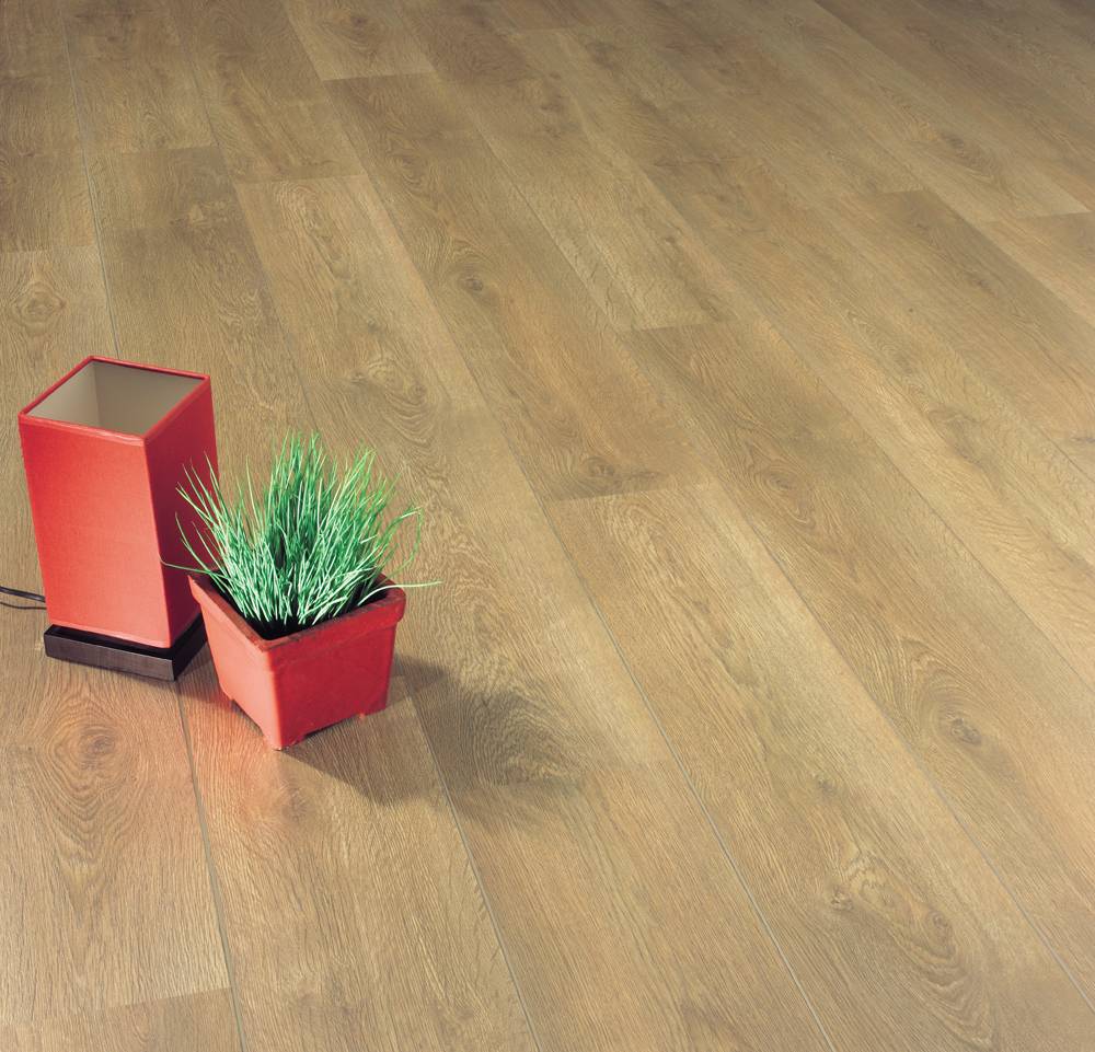 Доски ламината обработаны антистатическим покрытием и могут применяться с тёплыми полами. Надёжные замковые соединения прочно удерживают ламинат на стыках.