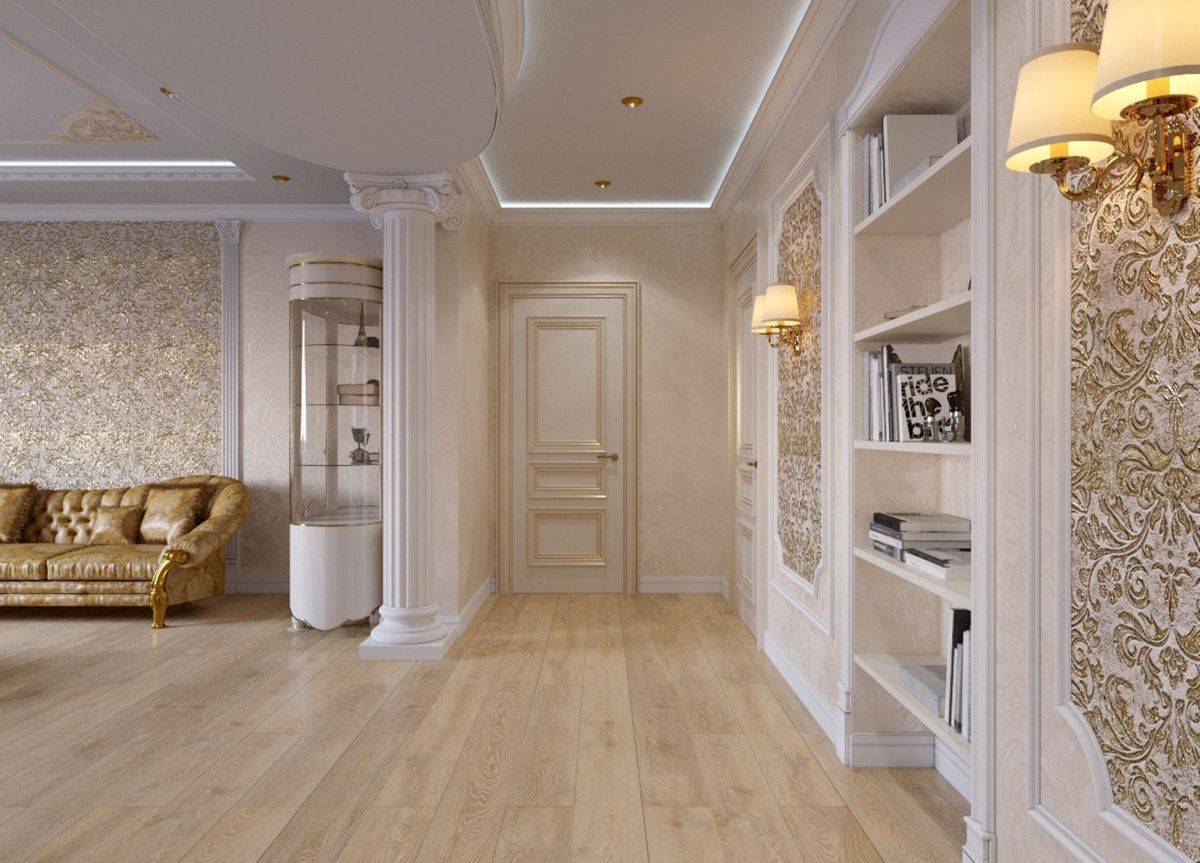 Использовать светлый ламинат в интерьере квартиры в сочетании с дверями и обоями можно в нескольких комбинациях. По принципу контраста, светлый тон напольного покрытия и темный цвет обоев, дверных проемов.