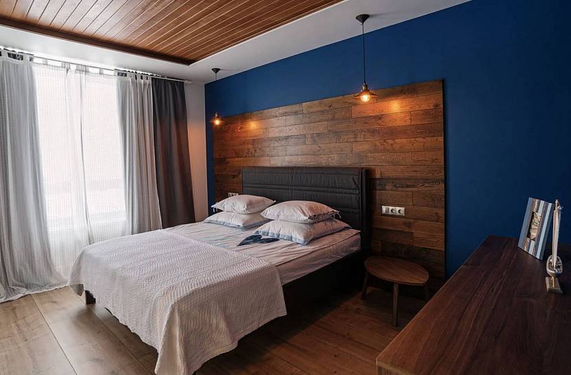 Обустройство потолка, пола и стен в спальне ламинированными панелямиИсточник sense-life.com