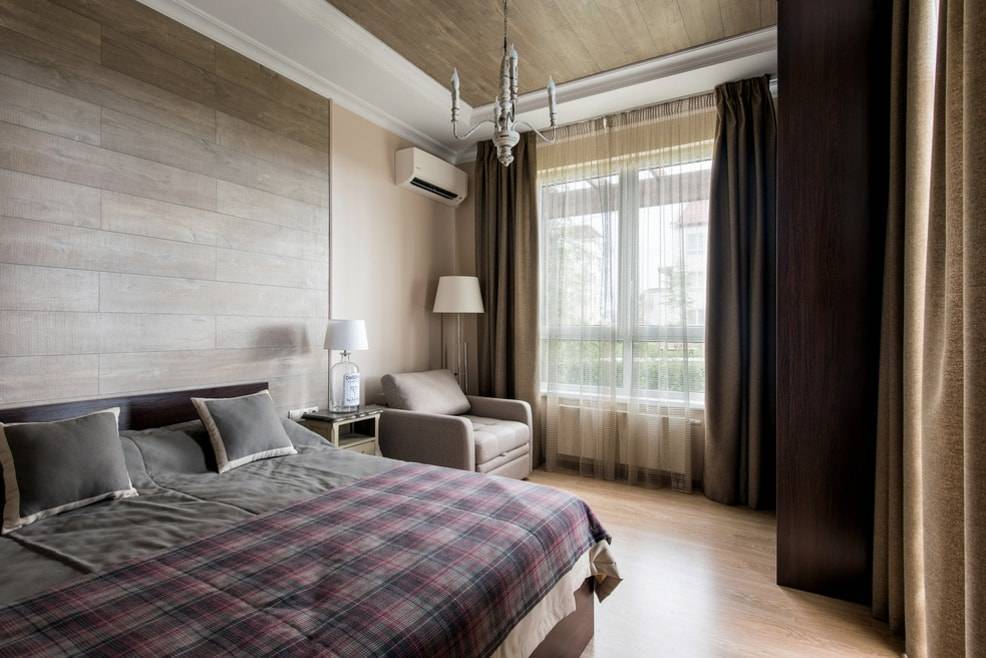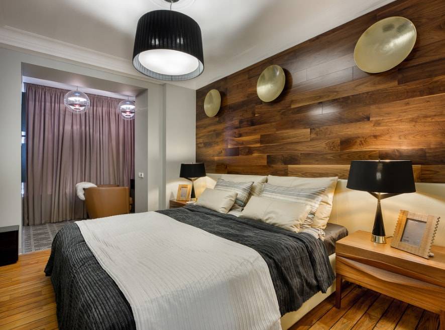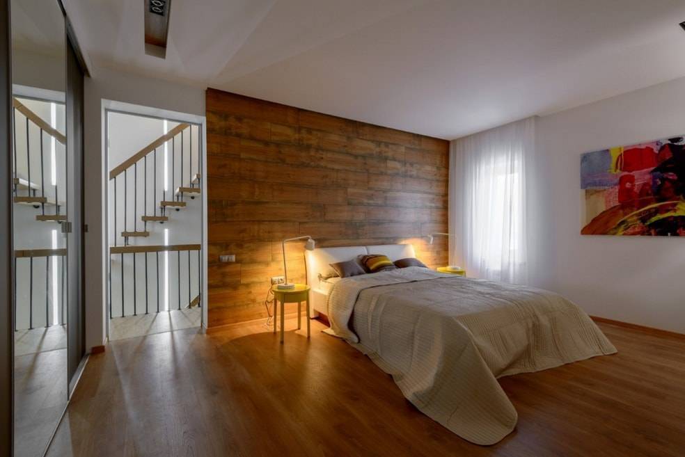 Оформление стены ламинатом в спальне