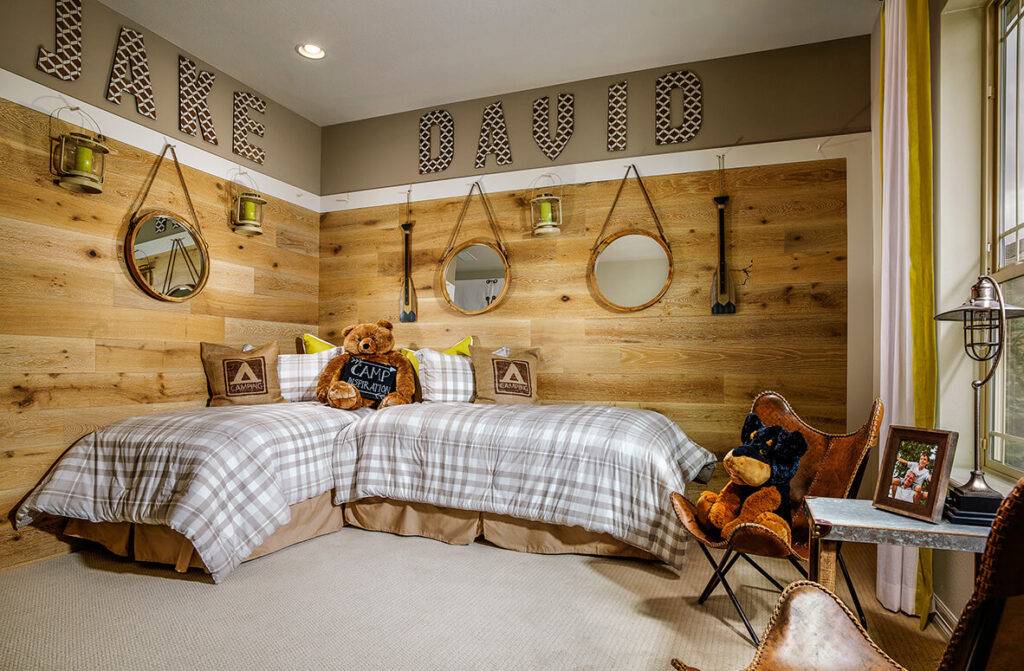 Альтернативный вариант — облицовка стены напротив кровати, если там планируется установить телевизор,