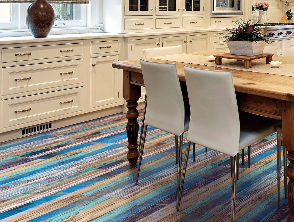 Мокрые скользкие полы могут стать причиной травмы. Пол в кухне должен иметь шероховатую матовую поверхность. Многослойные ламели с водоотталкивающей пропиткой может иметь пвх покрытие, пластиковую основу.
