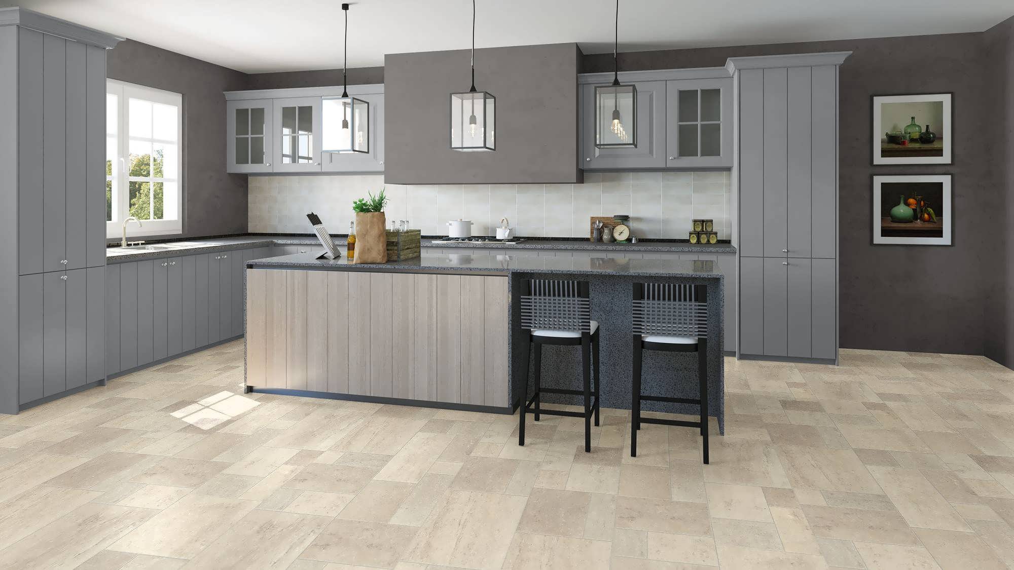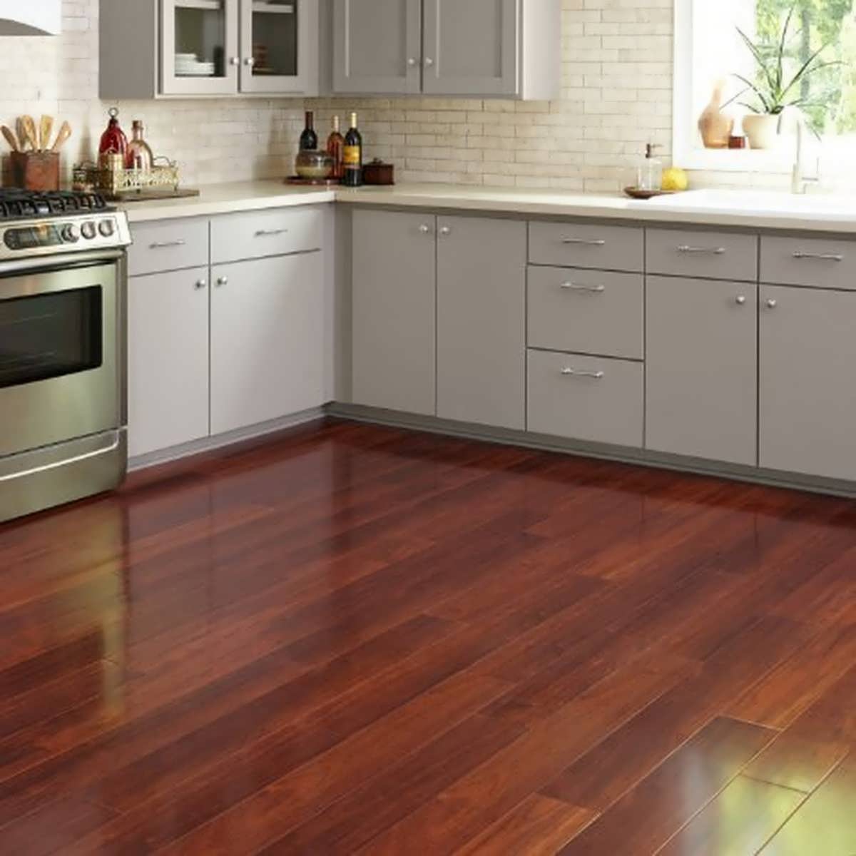 Кухонный пол можно застелить любым ламинированным материалом, обладающим достаточным запасом прочности.
