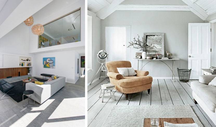 Светлую ламинированную напольную доску можно использовать практически в любых стилях интерьера. Особый акцент в этом случае можно сделать на способ монтажа отделочной доски, который может быть представлен: