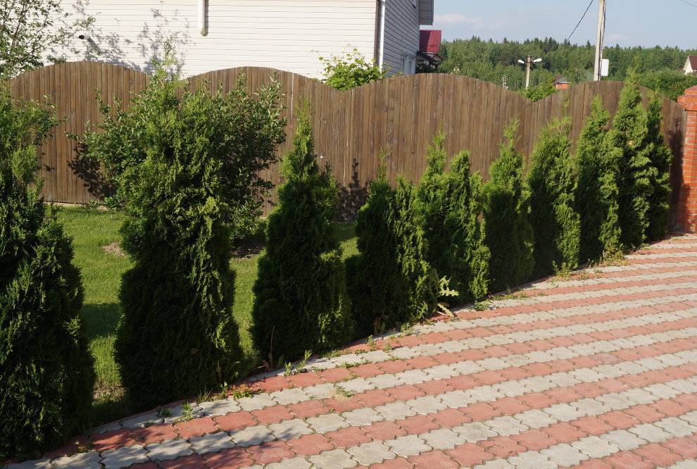 - Зона ограждения. Забор и живая изгородь вдоль границ участка.