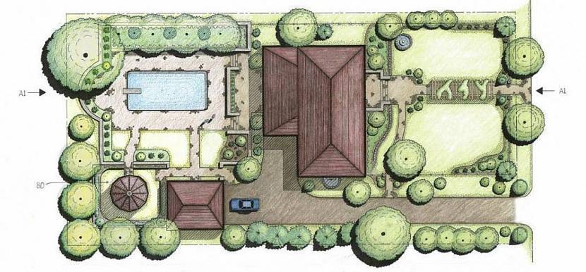 Благоустройство территории участка следует начать с работы над проектом