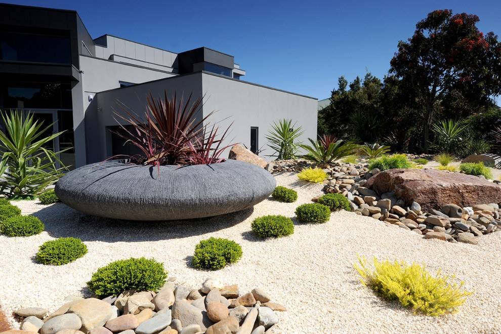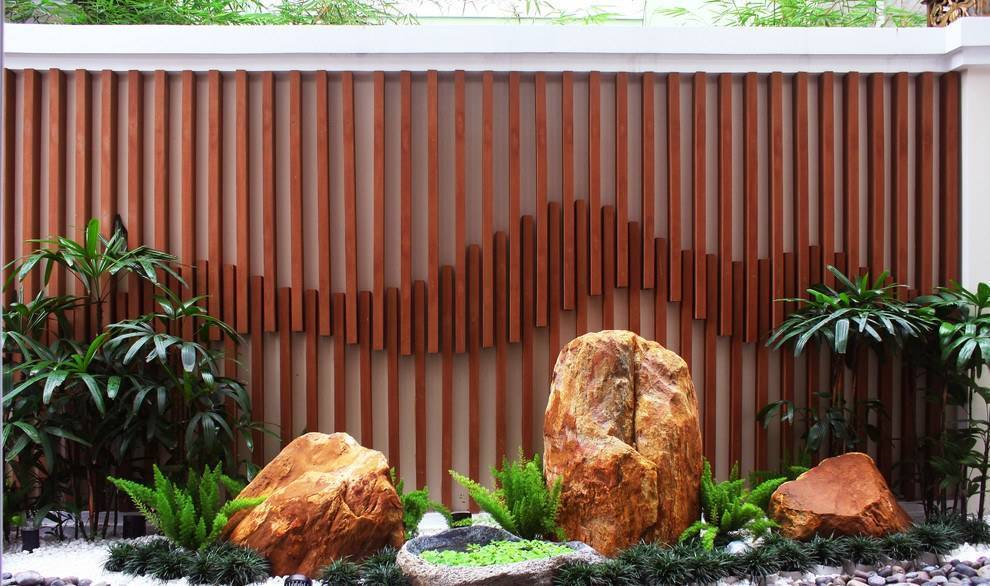 Японский стиль. Яркая черта – минимализм. Обязательно присутствие водоема, крупных камней, зеленых растений без цветов. Также характерны для японского стиля карликовые кустарники и хвойные деревья, тропинки из гравия, легкая подсветка. Такое решение идеально для небольших территорий.