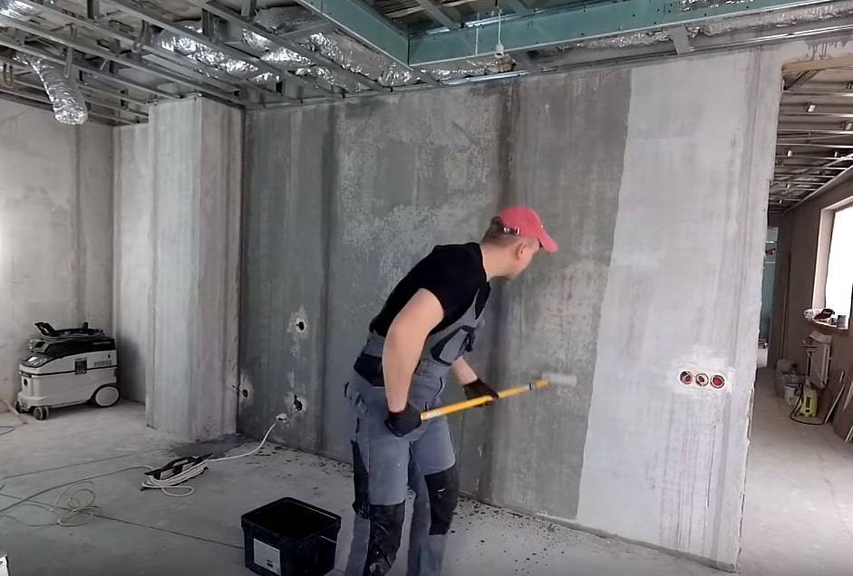 - Хорошо очистить поверхность от загрязнений, а потом обработать ее грунтовкой Бетоноконтакт или другим веществом глубочайшего проникания. Делается это для уменьшения впитываемости воды потолочным или стеновым основанием и с целью его доп укрепления. Опосля грунтовки поверхности не будут давать усадки.