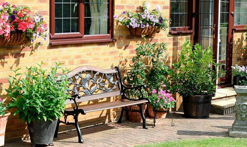 Их обычно устанавливают недалеко от порога, что обуславливает выбор материала. Специалисты по дизайну настаивают на том, что внешний вид парадной скамейки должен соответствовать экстерьеру дачного домика. Таким образом, если строение выполнено из камня, то скамейка, соответственно, тоже должна быть каменной.