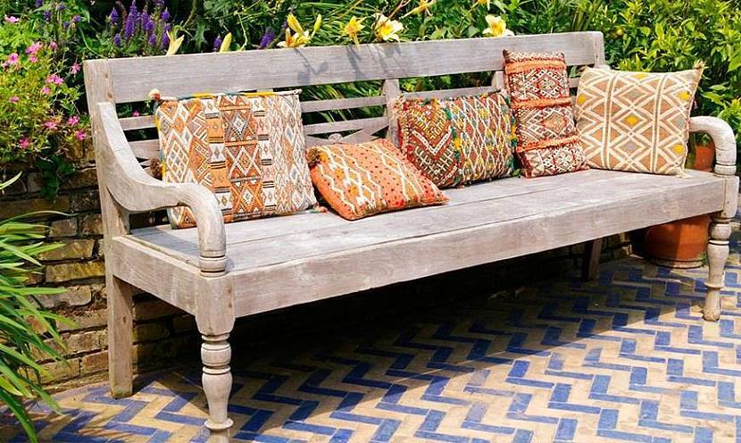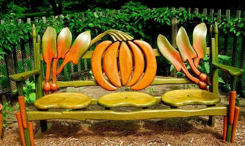 Изготовив самостоятельно скамейку для своего сада, захочется ее украсить, сделать более нарядной. Для этого используются разные способы.