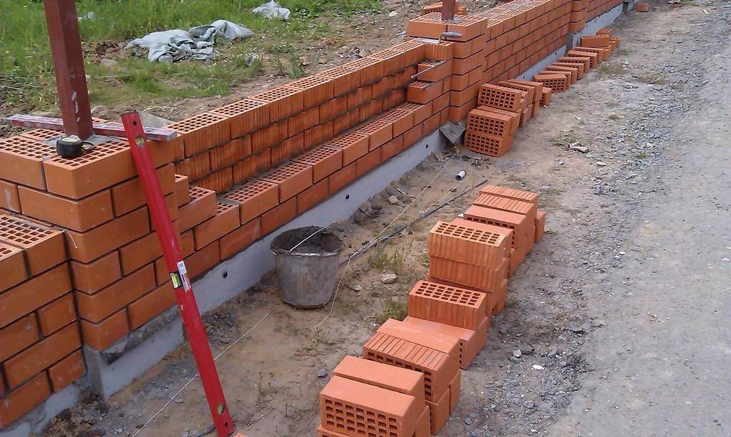 Когда фундамент под забор, цена которого уже не имеет значение выбран, то чаще всего этот выбор падает на тяжелую ограду из кирпича или других похожих материалов. Так какой фундамент нужен под тяжелый забор? На самом деле, фундамент тот же, что и под забор средней массы. Разница только в некоторых усилениях такого фундамент с технологической точки зрения. В армировании потребуется более массивная и толстая арматура, хотя бы 12 мм. Располагать прутки при армировании нужно таким образом, чтобы погружать их в бетон хотя бы на 70 мм и более. Следуя этим требованиям, и зная, что наименьшее расстояние между стержнями арматуры должно быть не меньше двух диаметров заполнения, получается минимальная толщина ростверка равно 250 мм. Это значение справедливо при заполнении бетона щебнем фракции 20-40 мм.