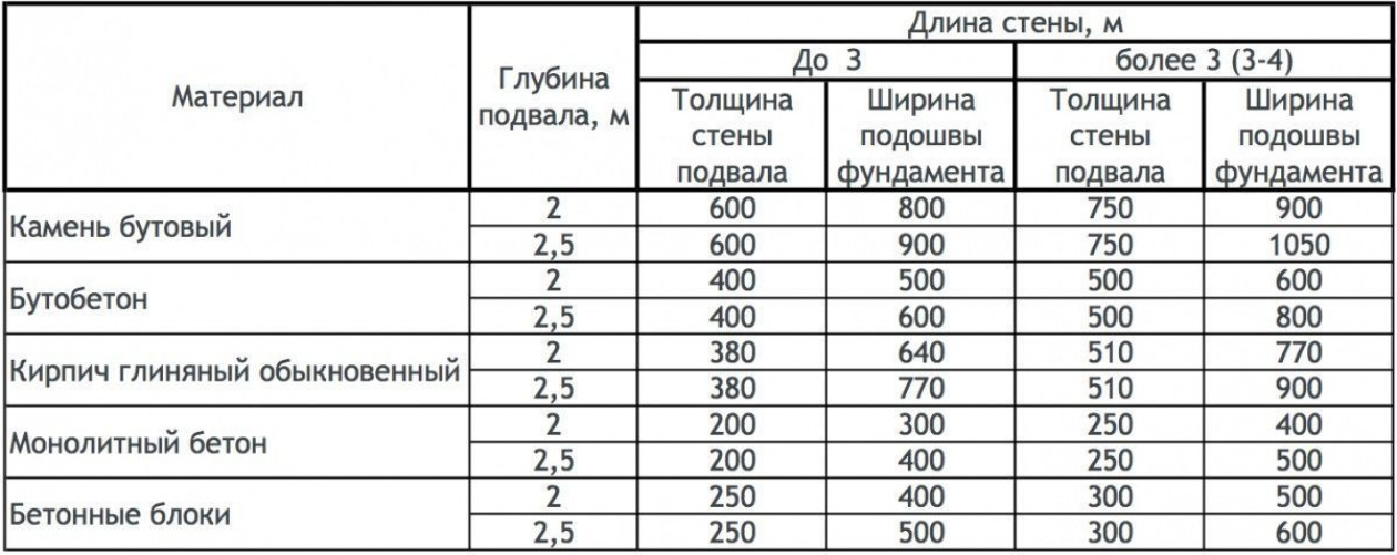 Эти величины соответствуют весу конструкции, у которой несущие стены толщиной в 150 мм, и уже по ним можно рассчитать нагрузку на подошву фундамента.