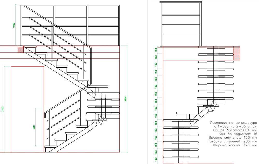 Устройство лестницы требует очень точной порезки заготовок и их сварки, установки готовых конструкций. Поэтому до начала работ необходимо вычертить точный чертеж или подробную схему, точно указать все углы и размеры.
