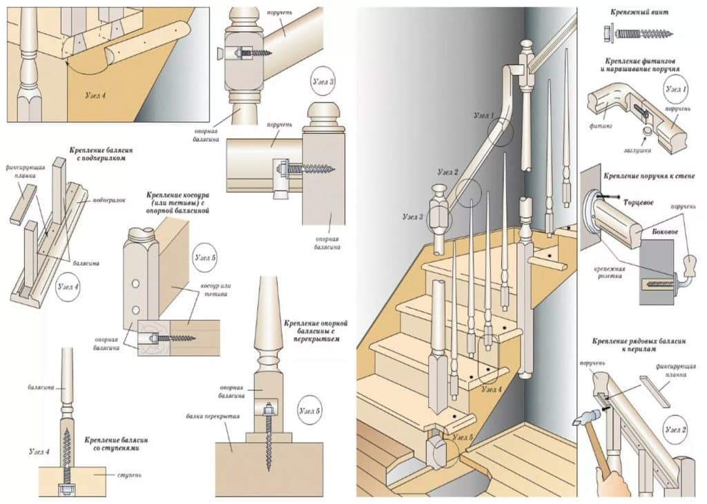 Она служит ориентиром при установке остальных элементов. Балясины можно прикрепить шурупами или саморезами, которые маскируют затиркой или заглушками.