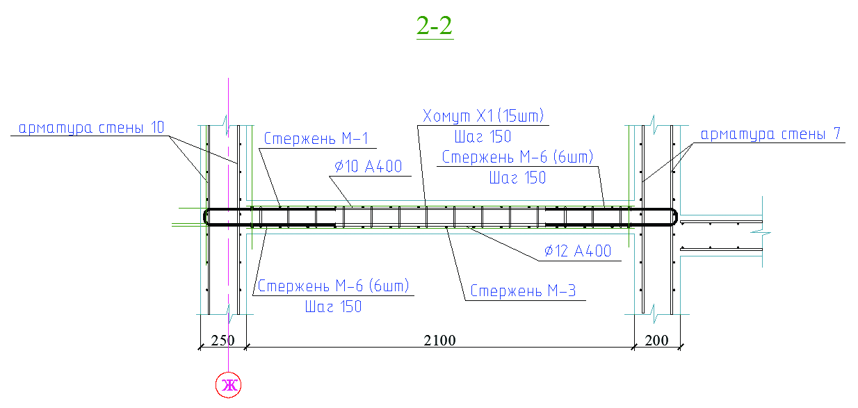 Разрез 2−2 (рис. 9) вычерчивается по тем же самым алгоритмам, что и рассмотренный ранее. Различие лишь в том, что здесь уже учтена вся арматура за исключением деталей М-6, при создании которых необходимо выставить флажок напротив пункта Включать в спецификацию