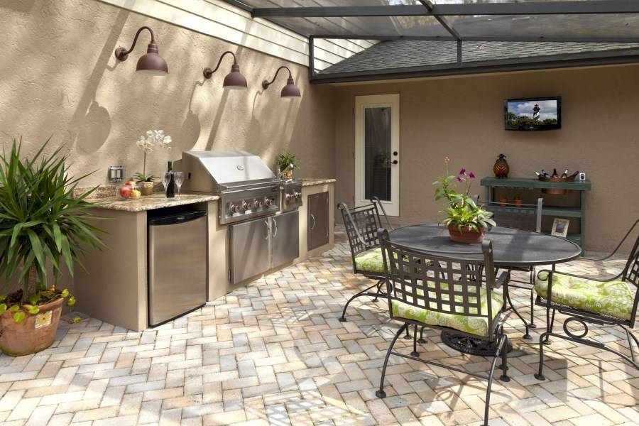 Достоинства закрытой кухни – это защита от осадков, ветров, уличной грязи и насекомых с грызунами.