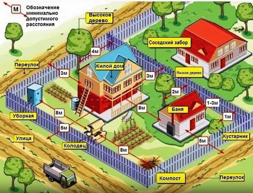 По СНиПу даже малая постройка должна располагаться с соблюдением таких требований: