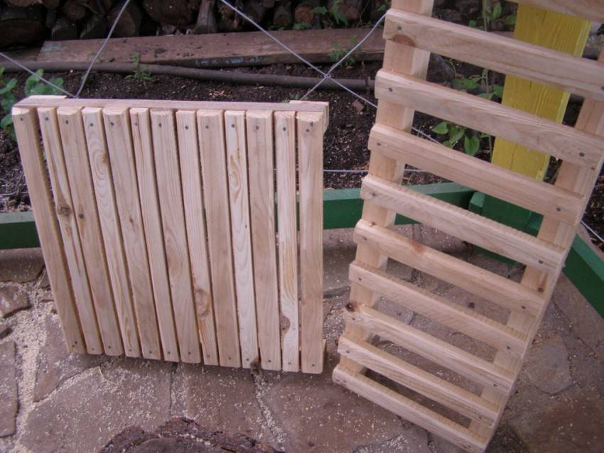 Установленный в вертикальном положении каркас с обшивкой крепят к основанию, монтируют душевую лейку с шлангом, устанавливают на пол трап из реек. Трап для душа съемный, его можно заменить.