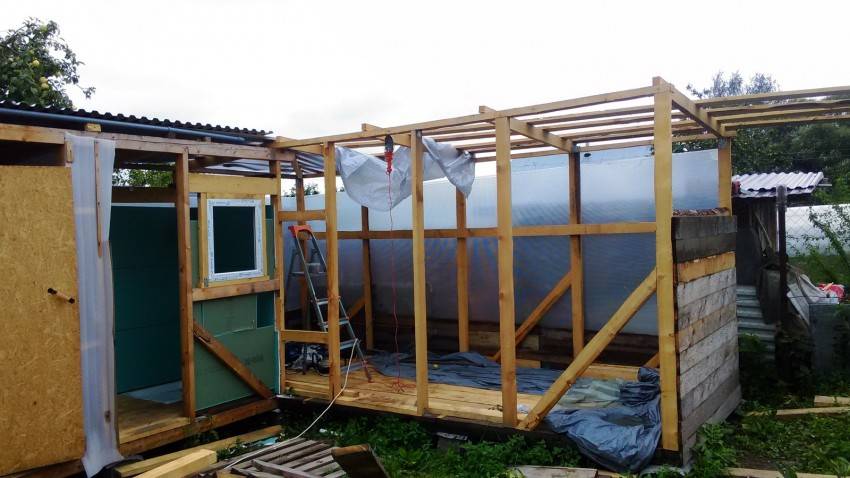 Ниже мы рассмотрим варианты постройки конструкции на основе готового комплекта, легкого деревянного каркаса с обшивкой деревом, металлического каркаса с обшивкой профнастилом и капитальной постройки.