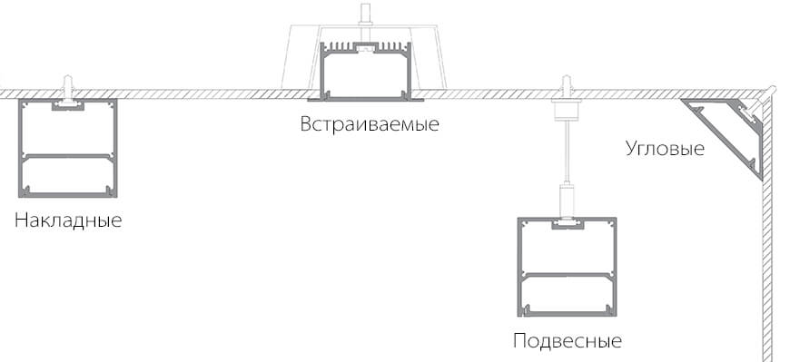 Светодиодные линейные светильники классифицируются на следующие виды: