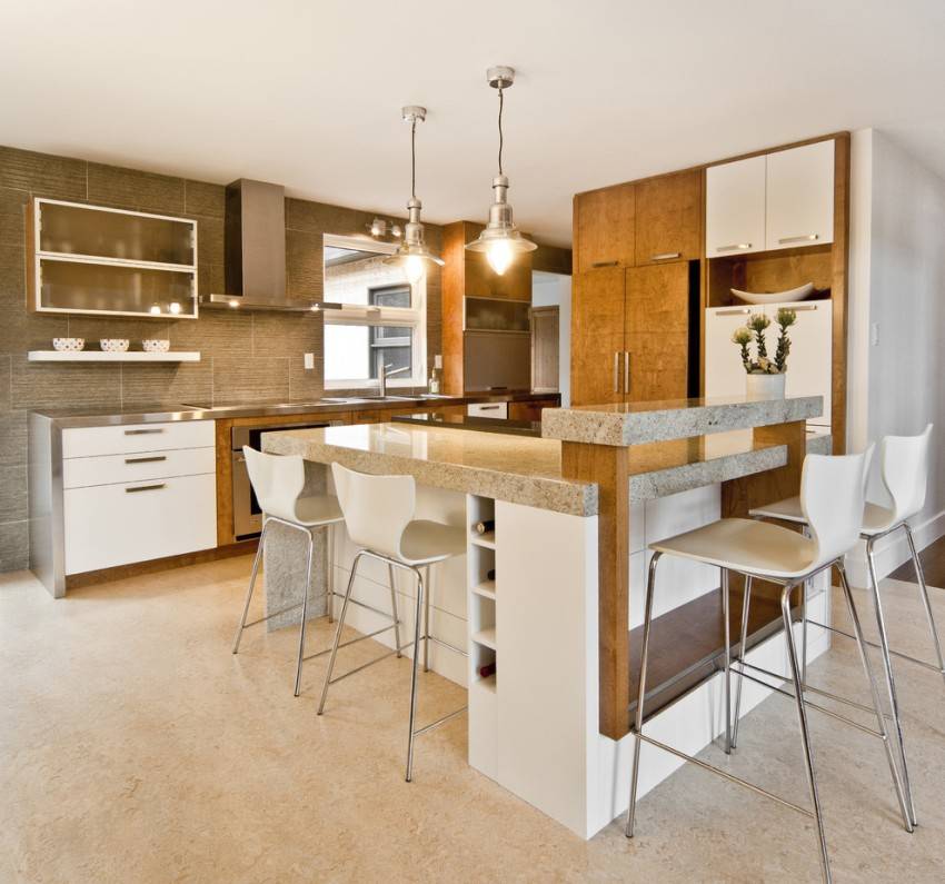 На кухне часто разливается вода, поэтому пол должен быть влагостойким и противоскользящим