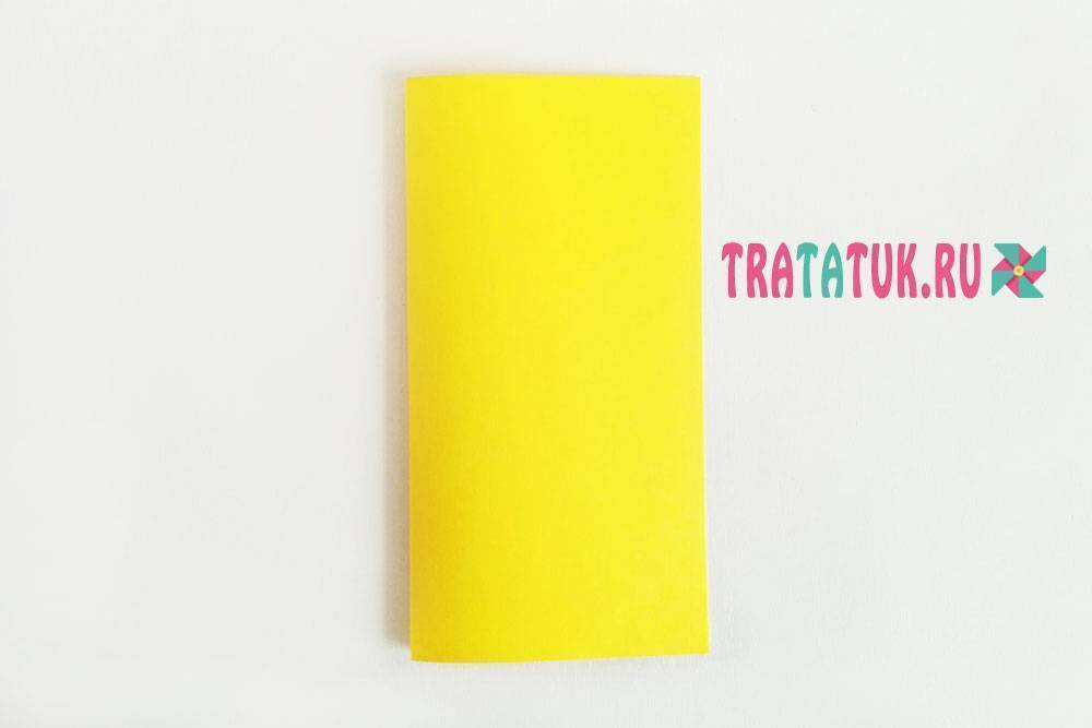 - Берём один лист и складываем его пополам, но сгиб не нужно слишком выделять.