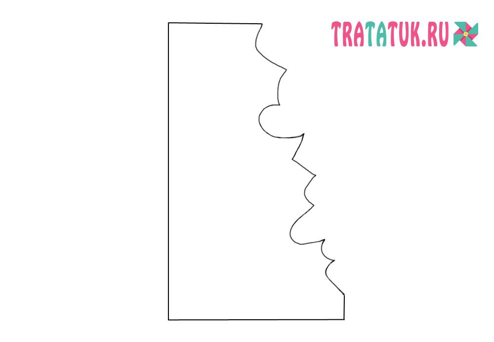 Распечатать шаблон и тщательно воспроизвести его линии на цветной бумаге, учитывая, что сгиб слева.