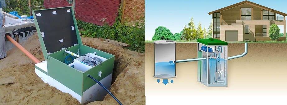 камеры в другую. Жидкость по канализационной трубе вводится в первый отсек,