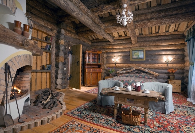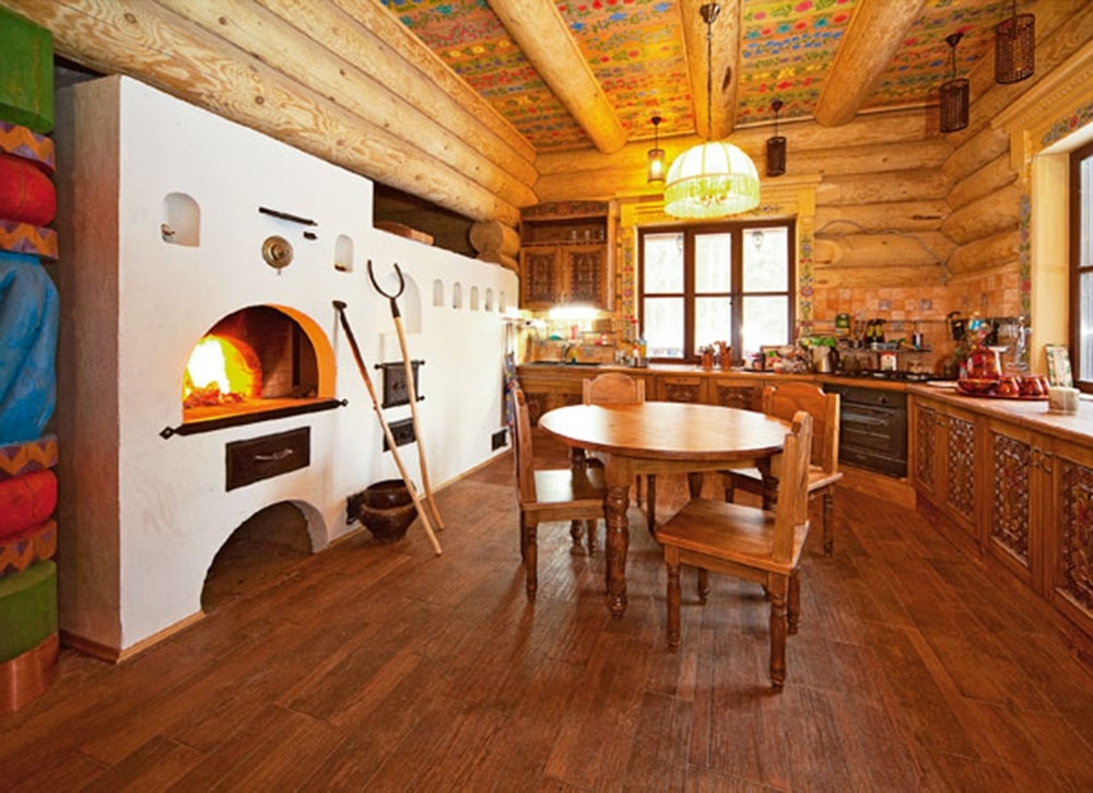 Для обустройства русской избы достаточно правильно подобрать текстиль, декор и другие мелочи, которые создают ту самую атмосферу. Максимальная площадь поверхностей будет выполнена из дерева, а дополнить пространство вы можете русской печью. Она не только будет украшать ваше жилье, но и станет источником тепла. Таким образом вам не придется тратить большие деньги на утепление дома, а заодно вы сможете готовить блюда с помощью печи.