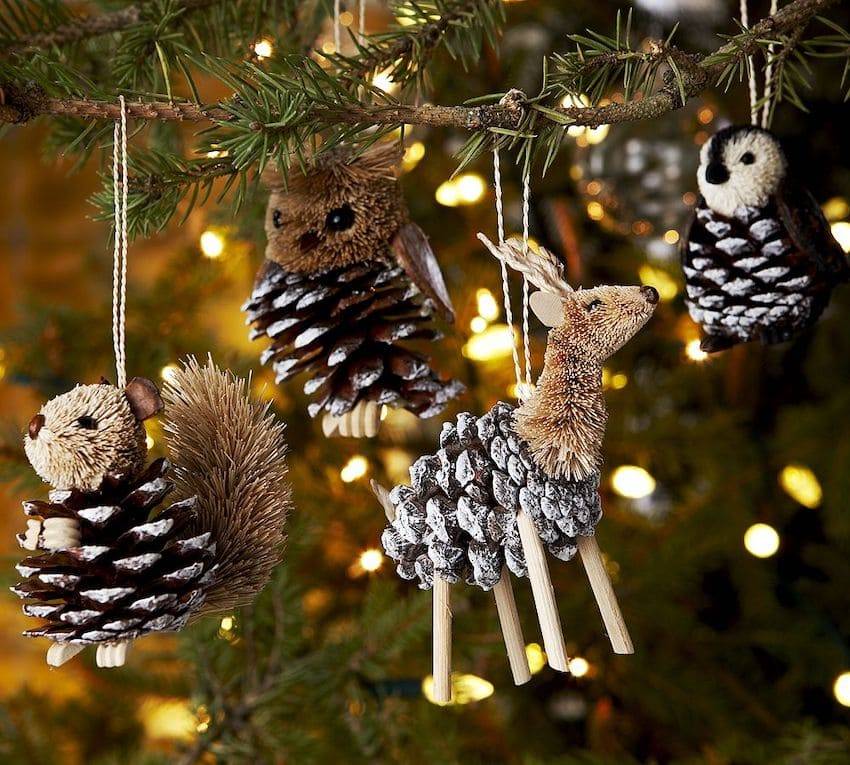 Разнообразить елочный декор можно с помощью фигурок лесных животных
