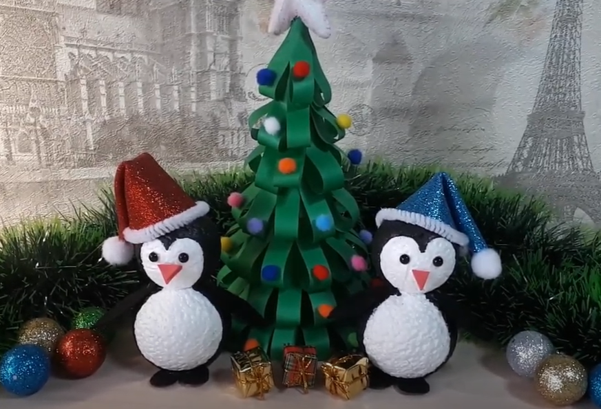 На Новый 2021 год можно сделать самые разные поделки в виде сказочных персонажей. Предлагаем сделать пингвина и снеговика из пенопластовых шариков. Мастер-класс интересный, а главное, простой. Малыши смогут выполнить работу своими руками и отнести игрушку в детский садик.