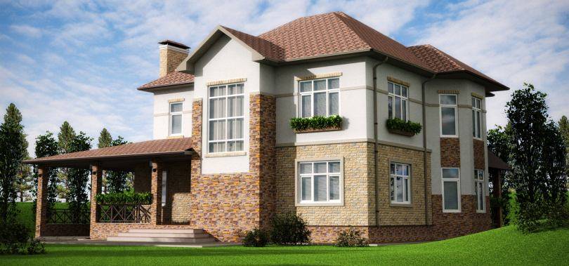 Жилой дом на каркасной основе обязательно требует красивой внешней отделки. Для этого используются яркие краски фасада