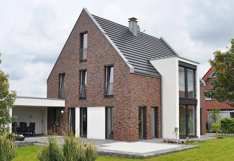 Красный цвет и его темные оттенки очень популярны в направлении современного экстерьера. Они отлично подходят для окраски фасадов каркасных домов с высокой или плоской крышей, наличием мансарды или двух этажей.