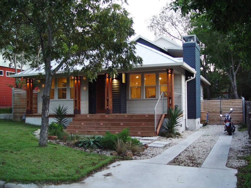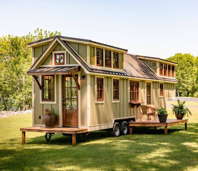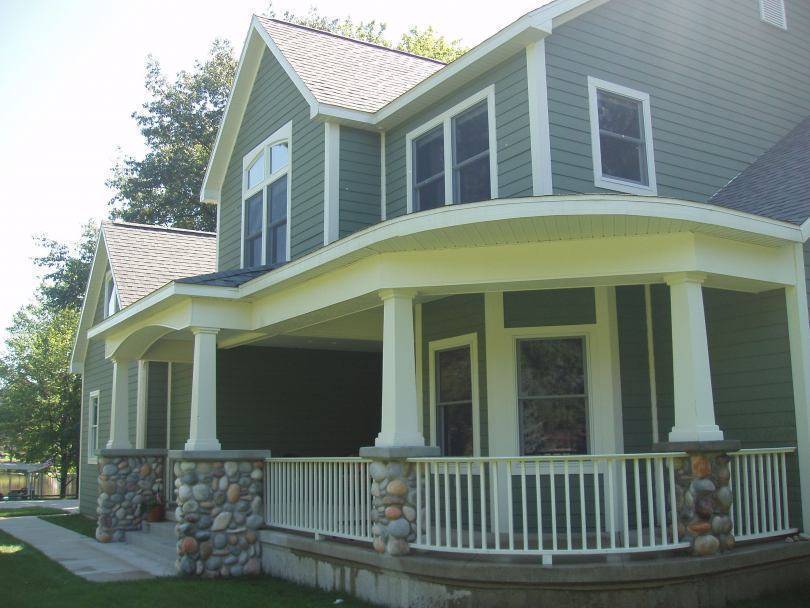 Каркасный жилой дом с фасадом зеленого цвета под деревенский стильИсточник sdlcustomhomes.com