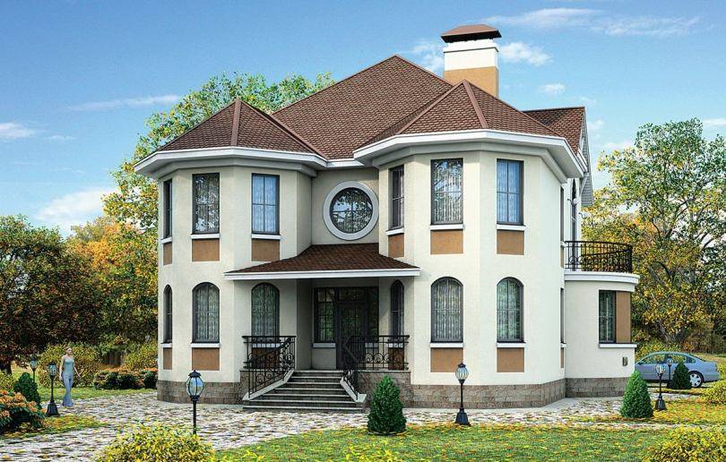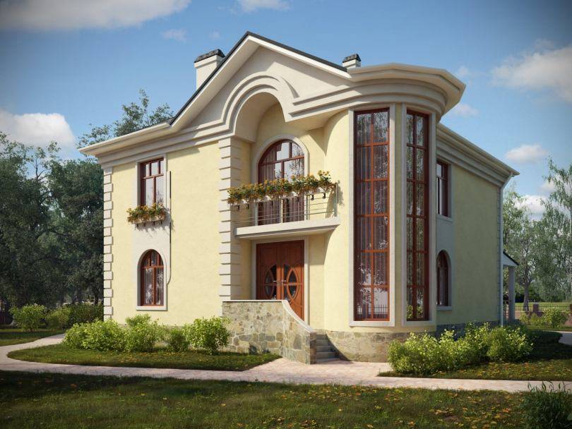 Выигрышных моментов таких вариантов несколько: увеличивается общая площадь за счет выступа и мансардного этажа, фасад приобретает романтичный и интересный вид, панорамное остекление всегда гарантирует проникновение большего количества солнечных лучей.