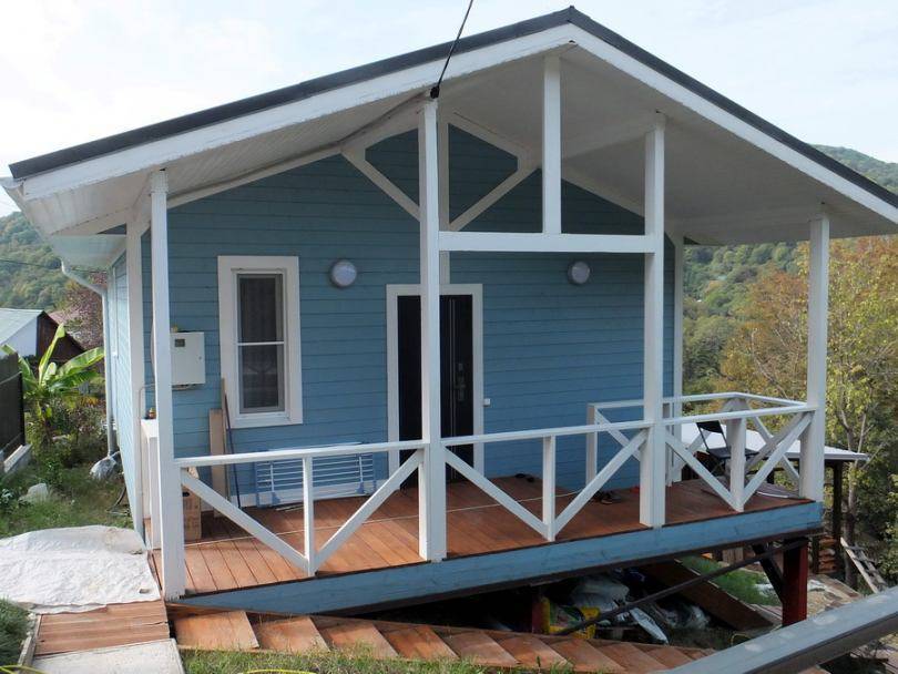 Очень часто домики возводятся в виде сборных конструкций. Начинается все с проекта или плана на бумаге. Предполагается, что такой домик не будет предназначен для круглогодичного проживания. Однако ради комфорта люди идут на многое (утепление, обшивка, укрепление, пристройка). Таким образом, в типовой проект могут быть внесены изменения на законных основаниях.