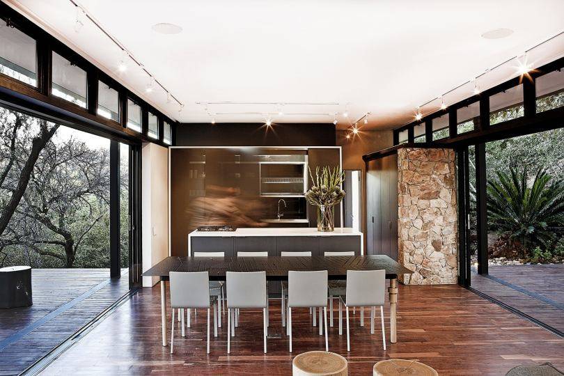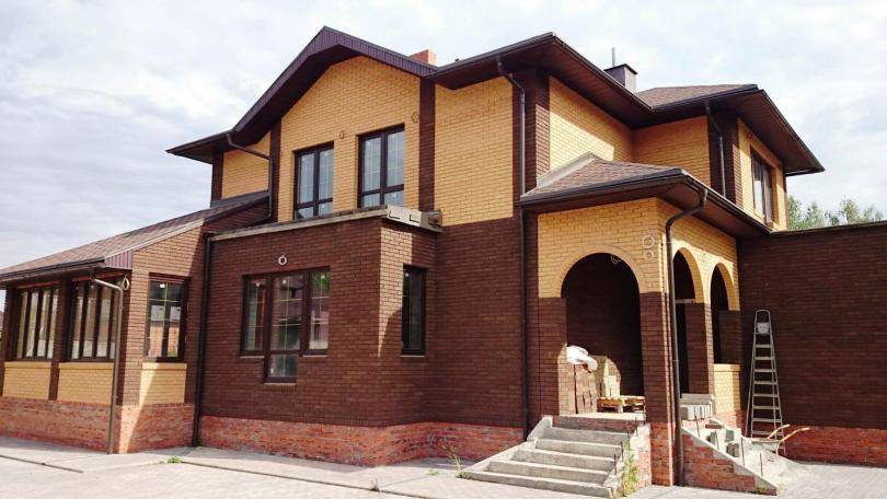Основная часть будет выполнена кирпичом. Для стен рекомендуется обшивка гипсокартоном, но при этом – стены должны быть так же кирпичными, вне зависимости от того несущая это стена, или вспомогательная. Окна в кирпичном доме стоит делить на два вида. Первый – окно обычное, второе – стеклянная стена, или дверь.
