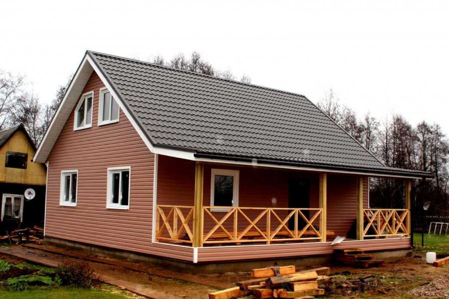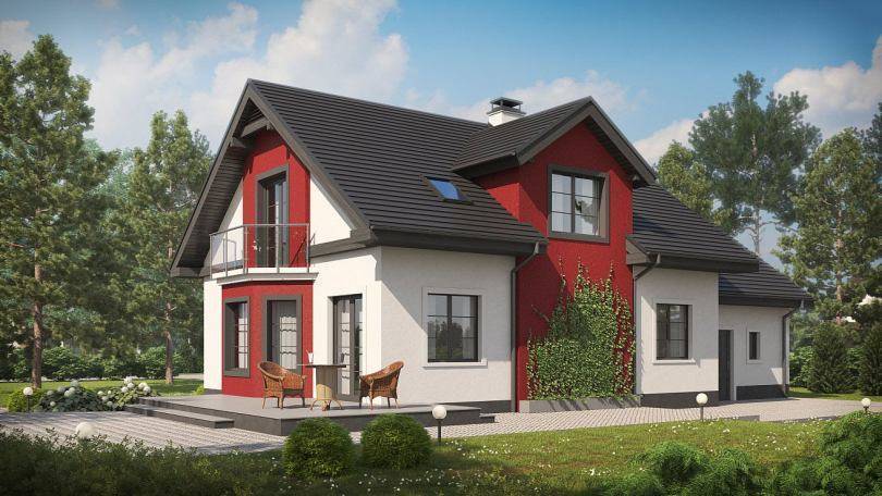 Каркасный дом с красной черепицей и фасадомИсточник sds-dom.ru