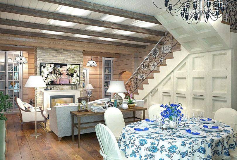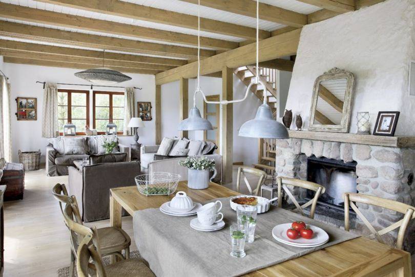 Благодаря отсутствию какой-либо роскоши коттедж легко можно создать с по-настоящему домашней и мягкой обстановкой. Для того, чтобы сделать акцент на простоте интерьера, лучше всего использовать исключительно нейтральные цвета, вроде бежевого и белого.