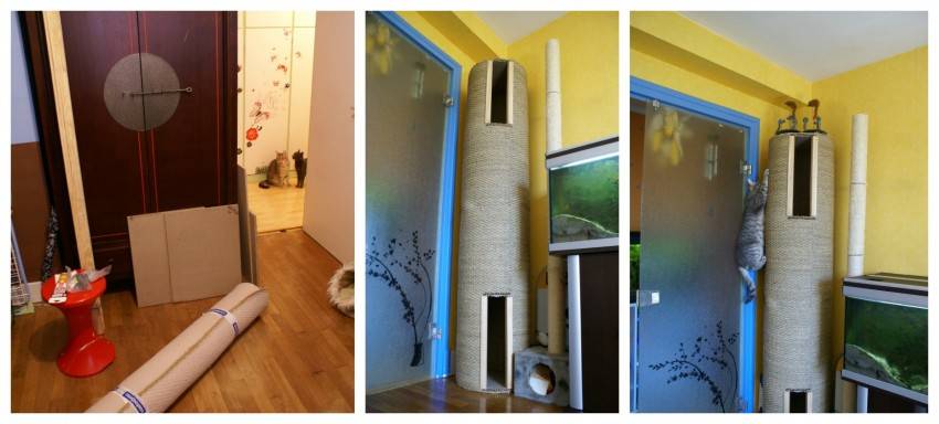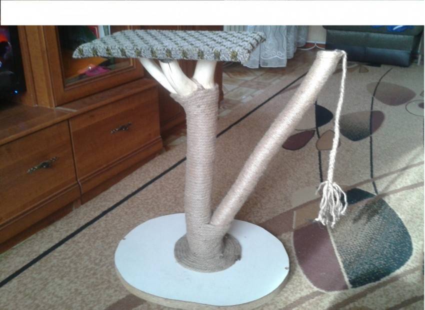 Можно изготовить многофункциональную конструкцию и закрепить лежанку на когтеточке. Нам понадобятся: