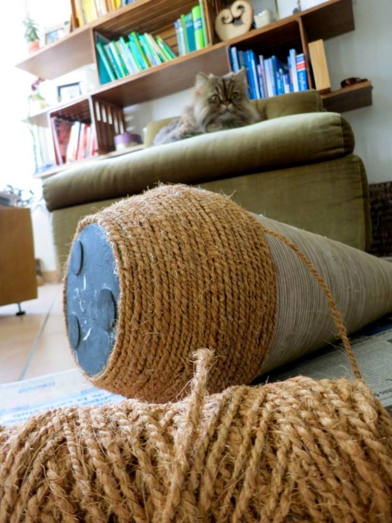 Ниже вы можете рассмотреть фото когтеточки для кошек, которую мы сделали своими руками. Теперь осталось только приучить своего питомца использовать это приспособление, и тогда он больше не будет портить вашу мебель.