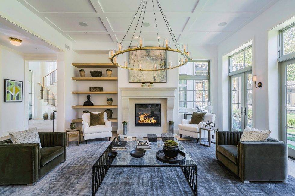 Большая люстра в просторной комнате