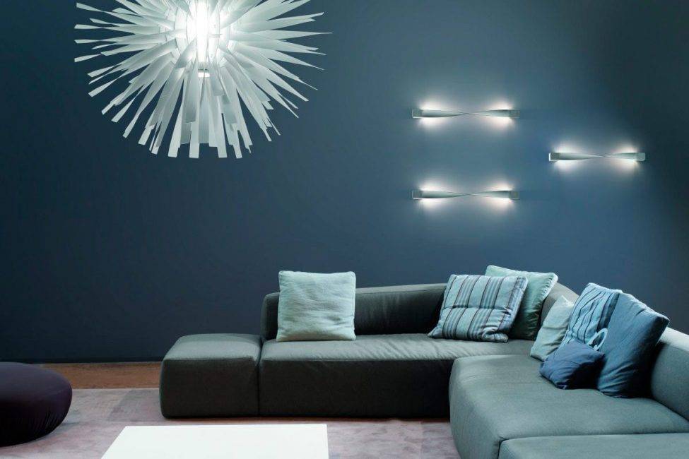 Светильники в интерьере гостиной могут выглядеть несколько простовато и однообразно. Популярными моделями становятся обычные лампы на проводах.