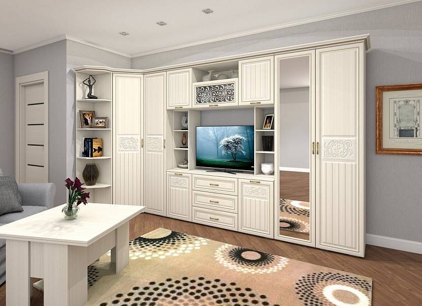 К наиболее популярным решениям современных модульных гостиных относят: