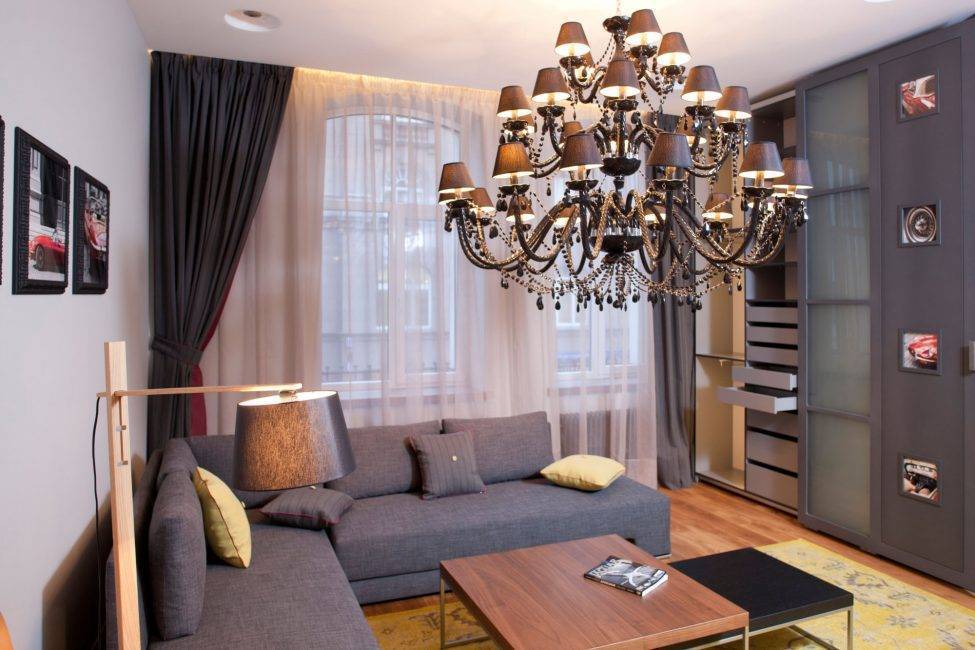 Их можно заменить более дешевой имитацией из стекла. Такие варианты обходятся дешевле, но смотрятся они практически как хрустальные светильники. Модели из нескольких ярусов могут быть установлены только в комнате с высокими потолками. В маленькой гостиной они будут выглядеть нелепо.