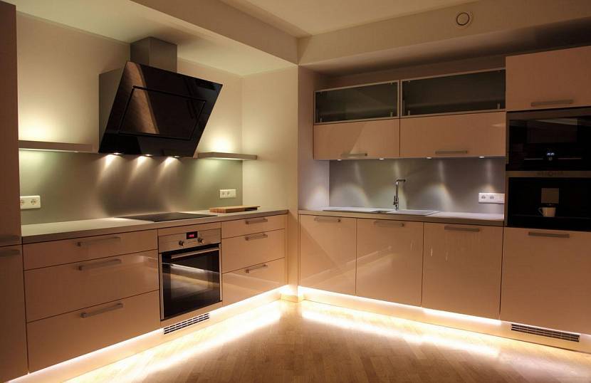 Подсветка в цоколе мебели на кухнеИсточник elmo.lt