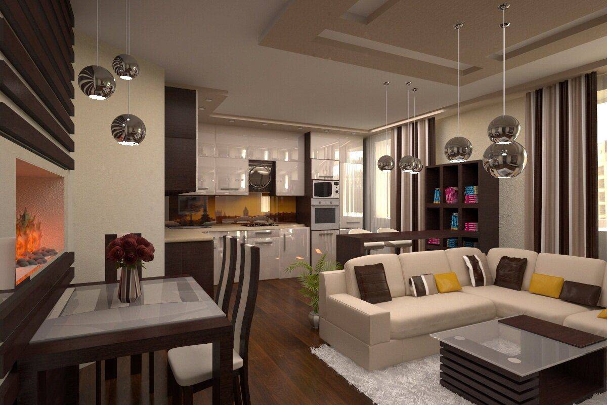 Этот современный дизайн характеризуется комфортом, строгой цветовой гаммой, а также оригинальной мебелью. На фоне металлических фасадов, многофункциональной техники и правильной расстановки каждого элемента – лучше всего будет смотреться подвесная люстра в форме шара, треугольника, ромба или мобильная потолочная люстра. В первом случае осветительный элемент станет частью креативного декора, а во втором – дополнением лаконичного комфорта.