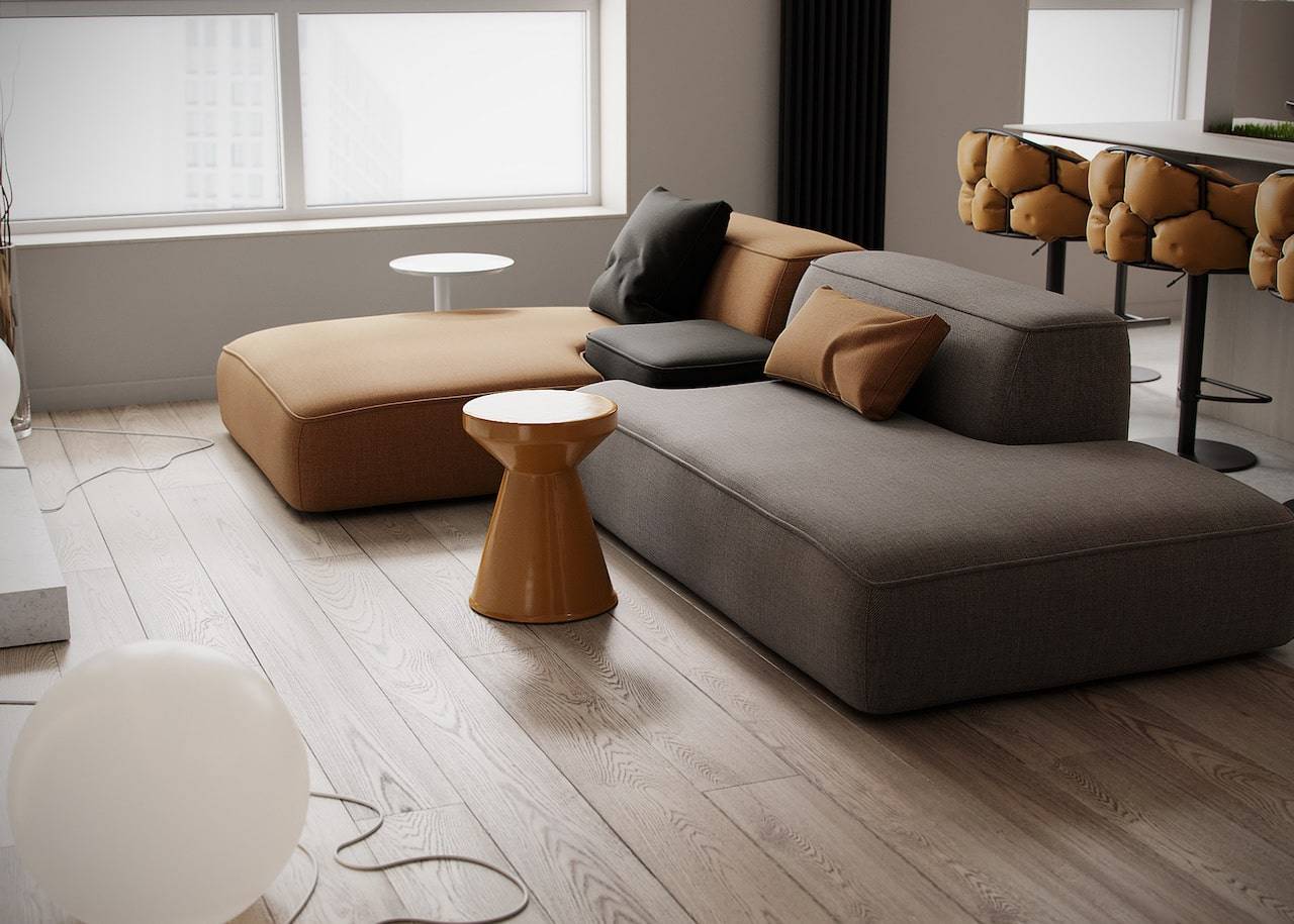 Тренды в дизайне интерьера предпочитают простоту и функциональность. Брутальность городского стиля смягчает минимализм. На нейтральном фоне не так грубо смотрятся трубы, потолочные перекрытия и кирпичная кладка. Модульная мебель станет гармоничным продолжением оформления.