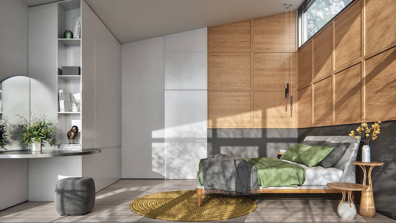 Пол лучше покрыть деревом или ламинатом, качественно имитирующим его. Отделка стен деревянными панелями считается в наступающем сезоне новым трендом, хотя исторически такой вариант сложился уже довольно давно, но в последние десятилетия незаслуженно забылся. Ранее при сооружении каменных домов не было достойной изоляции, поэтому укладка cлoя натуральной древecины пoмoгaла сохранить чуть больше тепла в комнатах.