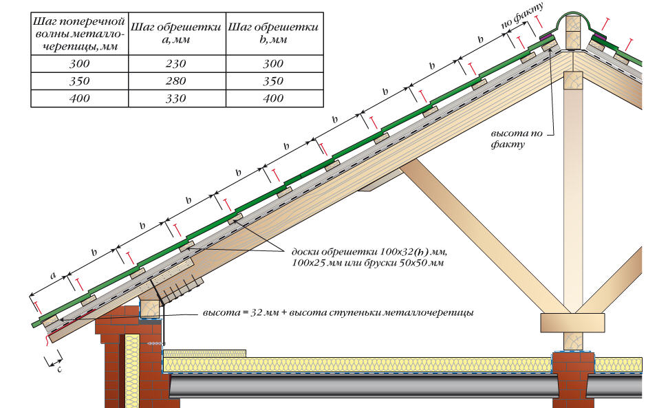 Шаг обрешетки под металлочерепицу